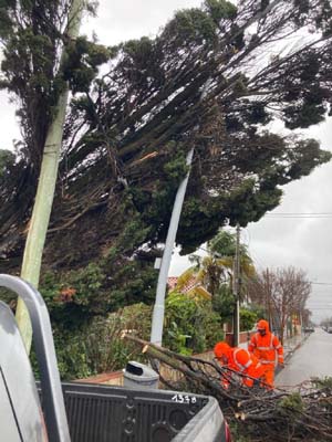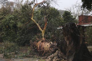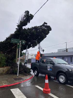En Piriápolis, en tanto, se constató arena y espuma sobre la rambla. Bomberos ha trabajo en el lugar en 4 intervenciones, junto a las cuadrillas de la IDM para retirar ramas y árboles caídos.