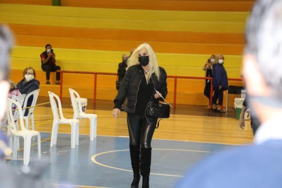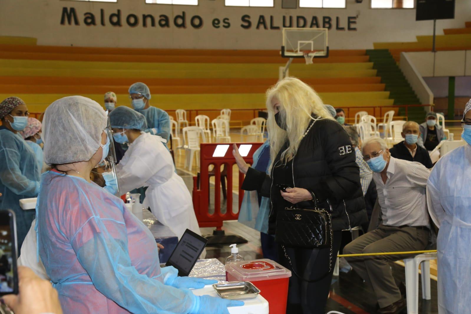 La diva argentina, que reside en nuestro país temporalmente, se inoculó contra el COVID en uno de los vacunatorios que funcionan en el Gimnasio del Campus de Maldonado.